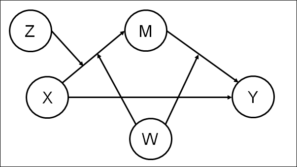 One indirect effect(s) of X on Y, conditional on W, Z: