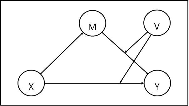 Y = b0 + b1M + b2MV + c1'X + c2'V + c3'XV