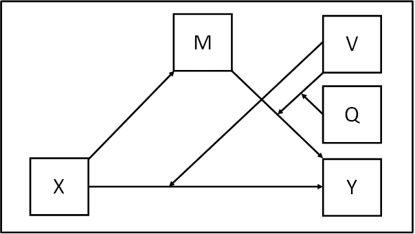 One indirect effect(s) of X on Y, conditional on V, Q: