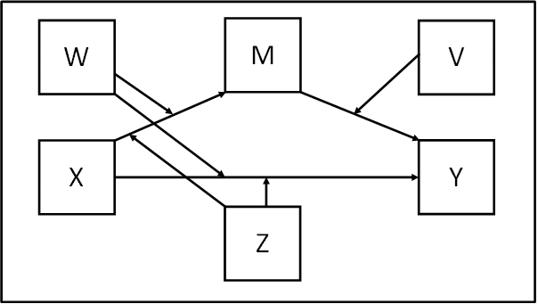 USEVARIABLES = X M W Z V Y XW XZ MV;