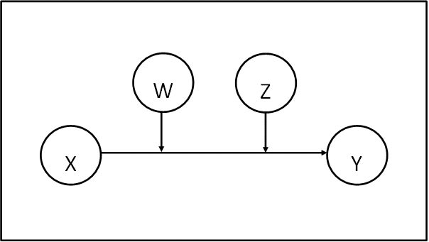 One direct effect of X on Y, conditional on W and Z: