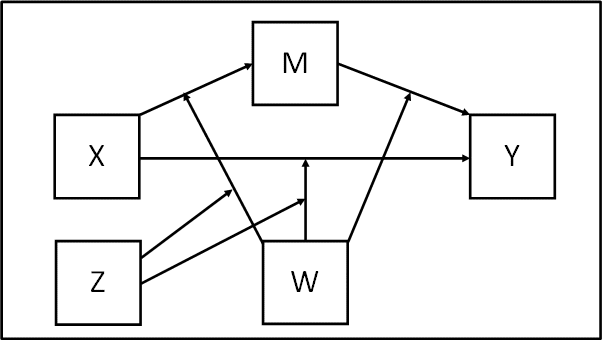 One indirect effect(s) of X on Y, conditional on W, Z: